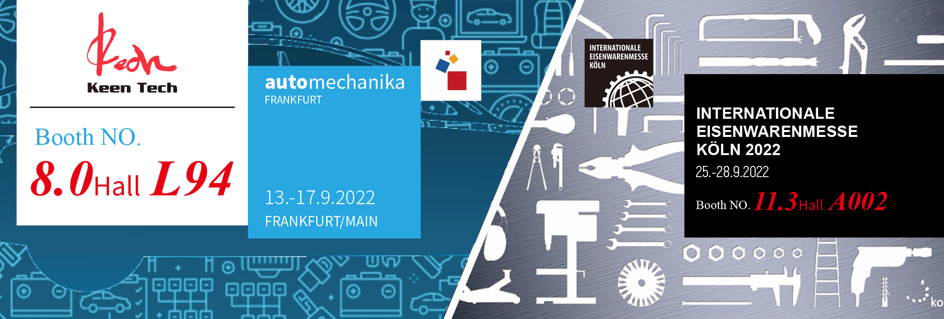We are participating at the two big international trade fairs, AUTOMECHANIKA and INTERNATIONAL HARDWARE FAIR.